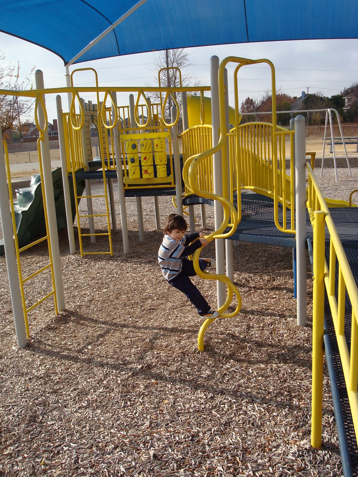 Mommy says: Murphy City Park in Murphy (324 Pine Top Dr) is somewhat hidden in a neighborhood (although I'm sure the locals know where it is). It has baseball & soccer fields, a basketball court (with a hopscotch court), a covered pavilion, swings, slides, & plenty to climb on. It doesn't have a restroom, which was a bad thing for us, ;) but there are plenty of stores/restaurants nearby to run to if you need them.